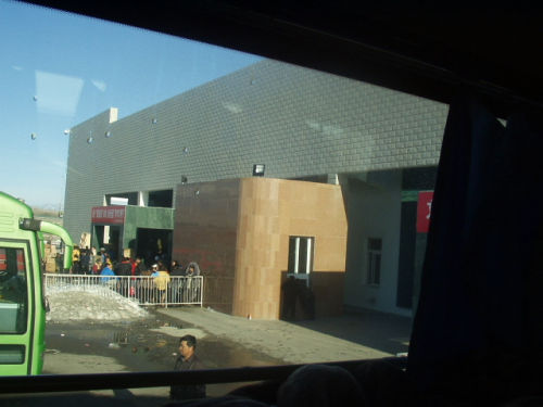 この 中国側の税関をでた後 夕食。その後は 夜間走行になります。ウルムチ着は 早朝5時です。