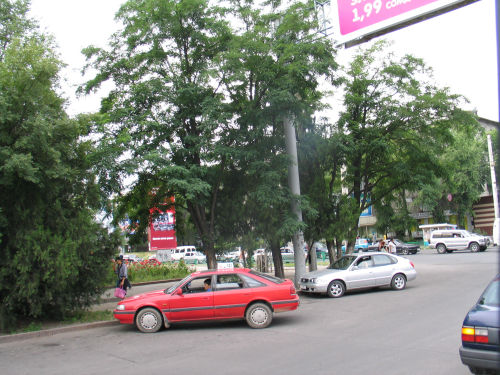 右回り →オッシュバザール →シビックジョル 大通り→西バスターミナル ここで時間調整→東バスターミナル→モスク→ビシュケク駅→モスコフスカヤ大通り→トクトグル大通り→オッシュバザール→オッシュバザールの裏を大回り→シビックジョル大通り→以下繰り返し→