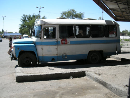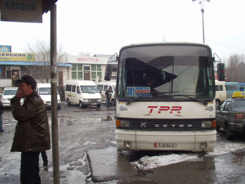 東バスターミナルで トクマクくいきにのります。頻発 10分おきくらいにでています。下の写真はマシュルートカーではなく トクマク行きの小型バスです。